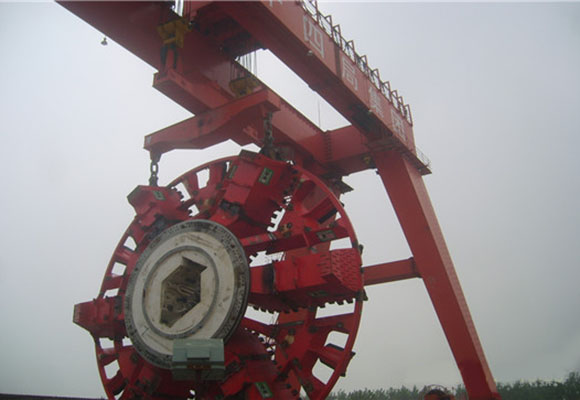 Crane de ridicare cu grinzi cu două grinzi, cu scut utilizată în principal pentru montarea dispozitivului de tăiere a capului sculei și a corpului scutului și pentru lucrările de ridicare a segmentului de susținere a tunelului în timpul construcției.