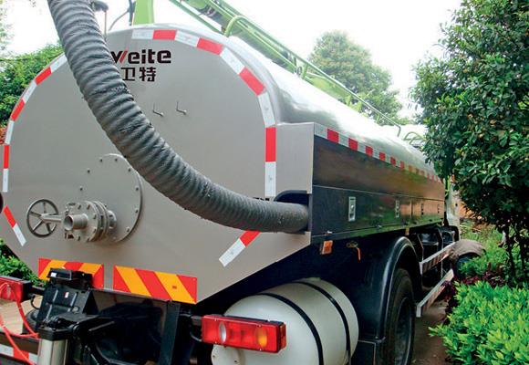Conducta de aspirație a apei uzate este montată cu un rezervor și un echipament de aspirație pentru aspirația de umflături, cum ar fi nămolul, fecalele din rezervorul septic sau alte canalizări cu lichide groase.