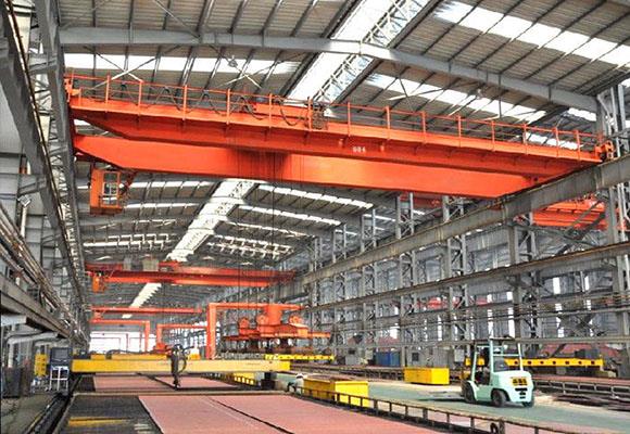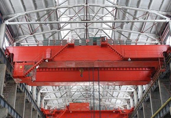 Se bazează pe cadrul podului de-a lungul direcției șinei atelierului care se deplasează longitudinal, căruciorul de-a lungul direcției principale a fasciculului care se mișcă transversal și mișcarea de ridicare a cârligului pentru a funcționa. Capacitatea mare de ridicare a acestei macarale este proiectată cu două cârlige care înseamnă două seturi independente de mecanisme de ridicare. Cârligul principal este folosit pentru ridicarea obiectelor grele în timp ce auxiliarul folosit pentru ridicarea obiectelor luminoase, auxiliarul poate fi, de asemenea, utilizat pentru înclinarea sau înclinarea materialului în cârligul principal. Cu toate acestea, nu utilizați cele două cârlige pentru a ridica în același timp când greutatea mărfurilor depășește capacitatea nominală auxiliară.